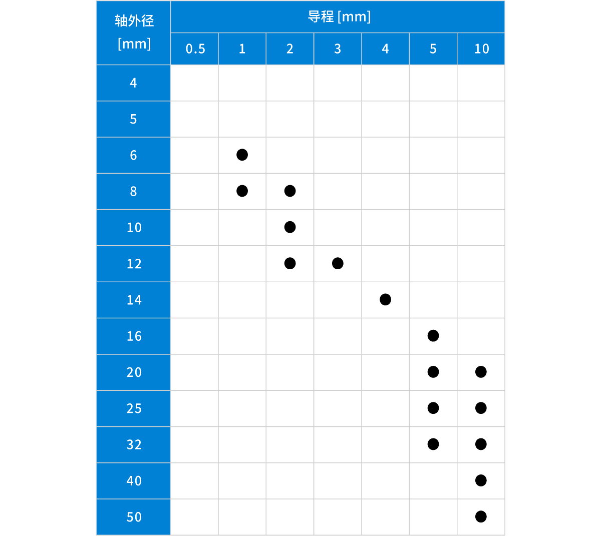 导程为1~10mm,适用于需要精密微进给和定位的机械装置。