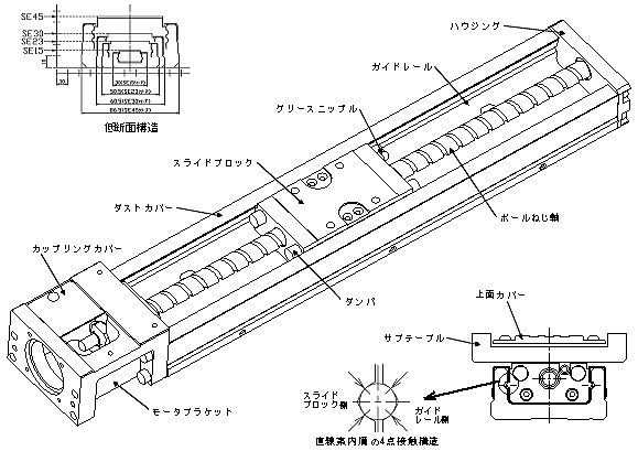 直线运动部与滚珠丝杠的沟槽一样采用哥特式弧形,可实现高精度的定位精度。