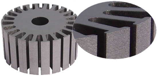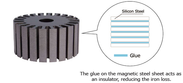 The Glue FASTEC® core provides an optimal solution for thin-sheet laminated products used in motors for eco-friendly vehicles, other high-efficiency motor cores, and electronic components such as solenoids and reactors.