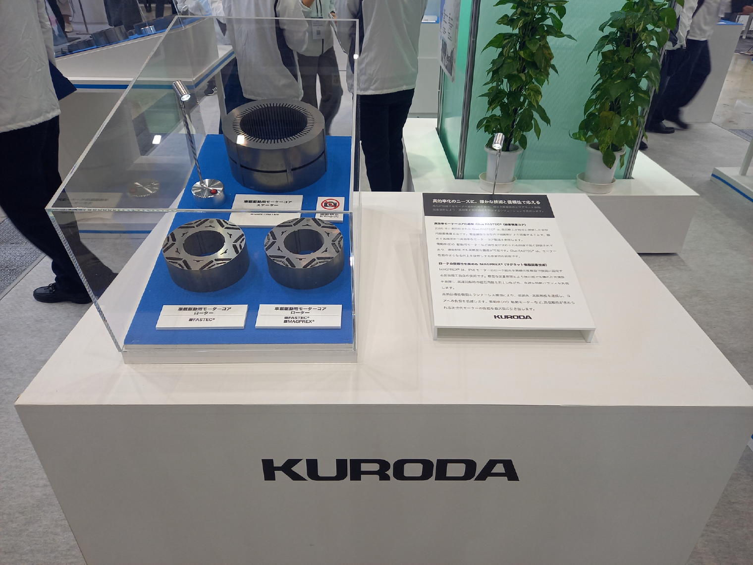 当社ブースでは、自動車業界の次世代ニーズに対応するべく、新素材モータコアを展示いたしました。この新素材モータコアは、軽量化、高効率化、環境負荷低減などに貢献し、多くの来場者様から高い関心をお寄せいただきました。