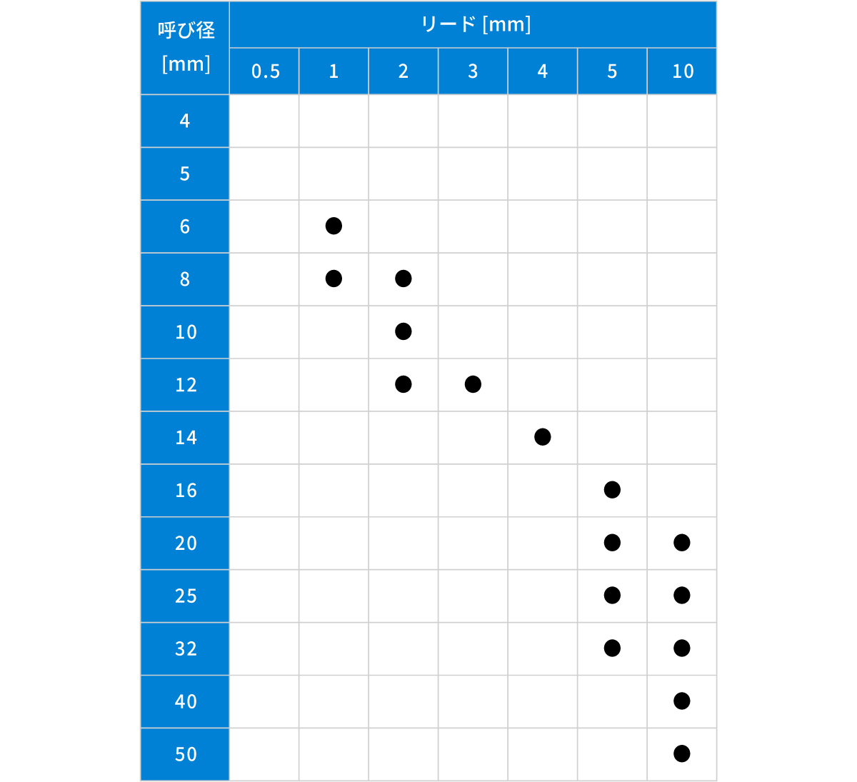 リードが1~10mmとなっており、精密小送りや位置決めを要する機械装置に適しています。