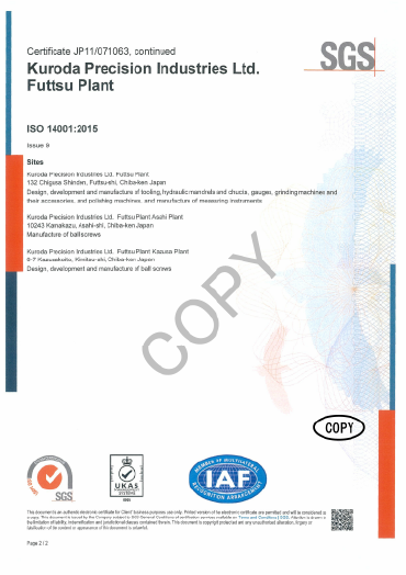 黒田精工株式会社およびその子会社で構成する黒田精工グループは、環境保全を経営上の最重要課題の一つと位置づけ、企業としての責任において環境問題に取り組んでおります。企業活動において省資源、省エネルギー、廃棄物の削減等をめざすとともに、お客様へ提供させていただく製品につきましても環境負荷を低減すべく、努めてまいります。