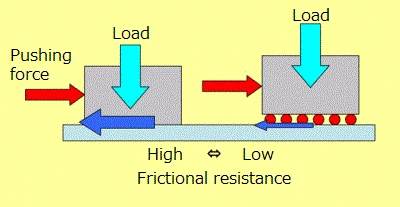 마찰저항을 줄이기 위해 2개의 물체를 개재하여 공이나 원통형으로 사용하는 것은 피라미드에 사용하는 석재의 운반 등에도 이용될 정도로 예로부터 알려져 있습니다.