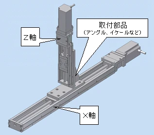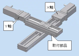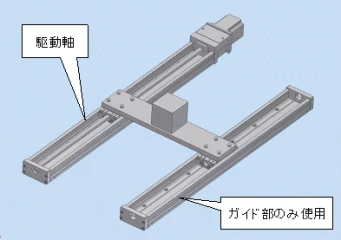 단품 부품의 조합에 비해 설계나 조립에서의 설계(선정)공수의 삭감을 도모할 수 있고, U자 형상의 가이드레일은 유닛 전체를 컴팩트화(그림1 참조)하고 있으므로 유닛 단축에서의 사용외에 앵글이나 이케일 등의 장착 부품을 사용함으로써 2~3축의 유닛을 X-Y조합(그림2, 그림3 참조), X-Z조합(그림4 참조)이나 단축 2개의 병렬 사용(그림5 참조)의 조합에서의 사용도 가능합니다.